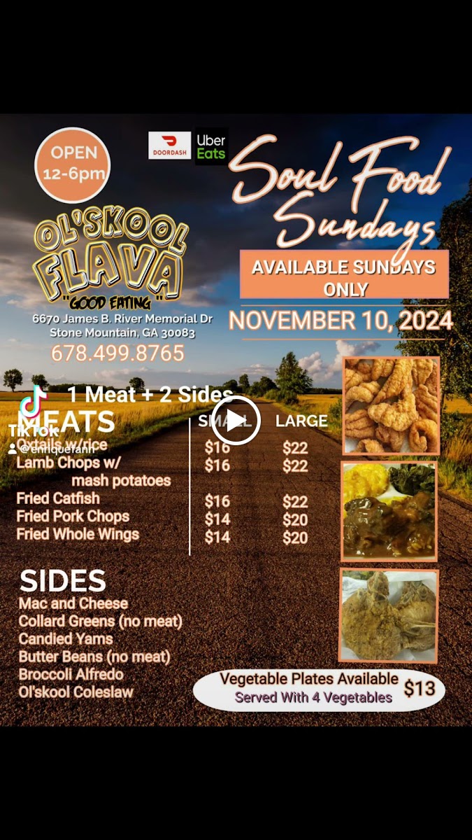 Just coming from the mountain and my boyfriend and I were famished. Easter Sunday needed to involve a great meal so as we were heading home we noticed and saw Ol’ Skool Flava were open and decided to give them a try. Small Ma and Pa establishment located about 5 minutes from Stone Mountain park sitting diagonally across in a strip center from the German Pretzel place. Walking in, it’s clean and you’re nicely greeted by the staff. Being our first time we had questions about the menu and how things worked. Nothing went unanswered and ordering was simple. We grabbed a table and waited less than 20minutes for our meals to come out. While waiting, washed my hands in their CUSTOMER ONLY restroom which was clean. There is also a TV that you can watch while dining in. Let’s start with the pricing: very affordable and they give you your moneys worth! And we all know with how the economy is now that is very much appreciated!!! Portion sizes were great! You are definitely given enough to finish if you have a big appetite and leave full or have something to take home if you are the type to get full quicker. Sundays have a special menu and this Sunday we saw that Oxtails and rice was featured!! . You pick a Sunday item PLUS 2 sides, talk about FULL!! So I opted for the Ox tails and rice with Mac n Cheese and Mustard/Turnip greens . My boyfriend had the same but he opted for the Mac n Cheese and Potato Salad (long time family recipe) for his sides. We grabbed some beverages when our meals came out and that’s all she wrote lol. Y’all know the excitement of some good food when you start humming out of nowhere and doing a little dance in your seat . That was me!! About the food though: DELICIOUS , well seasoned. Greens were cooked right, tender and seasoned just right. I might get a double serving next time. I am a Mac n cheese connoisseur and the Mac was really good, creamy and had a good cheddar flavor. Ox tails were tail’n honey, falling off the bone smothered in a robust gravy on a bed of white rice. The meal does come with a roll so you can SOP up the juices, but I was so dang full I didn’t even make it to the roll . My boyfriend said the potato salad SLAPS aka is . Take a look at the before and after photos and make sure you go visit these nice ppl and show a local business some support; you most definitely wont be sorry!!