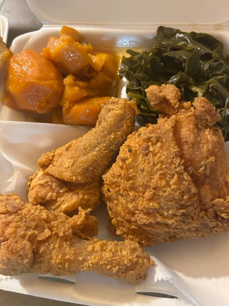 FOOD WAS DELICIOUS !!! My first visit here. I ordered a large fried chicken meal. This food was so good it’s hard to describe, but it tastes like some of the best home cooked food I’ve ever had. It doesn’t taste like takeout at all, It tastes like home cooked!!!! The chicken was fresh and fried lovely, collard greens perfect and Mac and cheese perfect. Oh, cornbread perfect also. Portions were very generous. Food was not heavy and did not hurt my stomach, in fact, my body is thanking me for that meal. Clean establishment and friendly customer service. I should have pulled the wrapper back to show the amount of sides, but they are very generous portions. If you’re thinking about going here - GO!!!!! I will be returning!