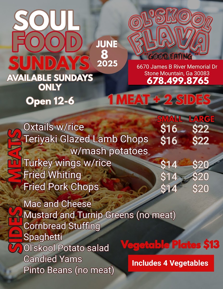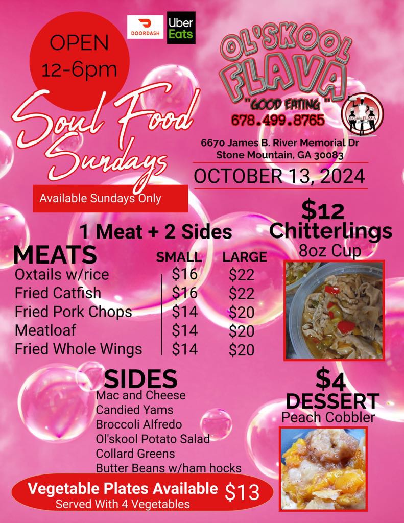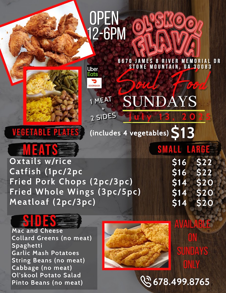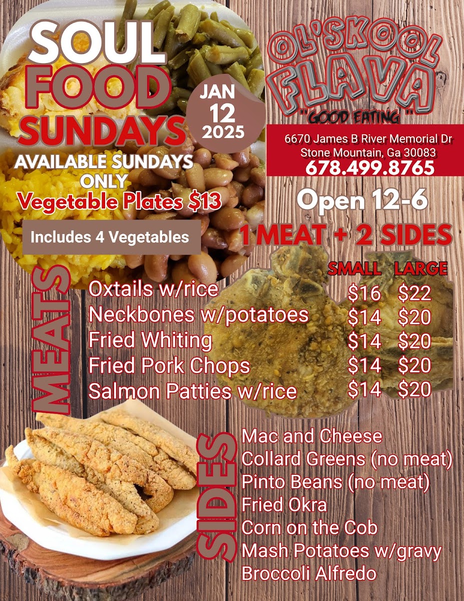 Ol'Skool Flava offers a menu rooted in comforting, family-style soul food, perfect for relaxed meals any day of the week. The selection is straightforward yet thoughtfully prepared, with dishes that invite sharing and savoring together. Whether you're stopping by for a hearty weekend lunch, an easy family dinner, or a casual catch-up with friends, the menu matches a warm and welcoming atmosphere.